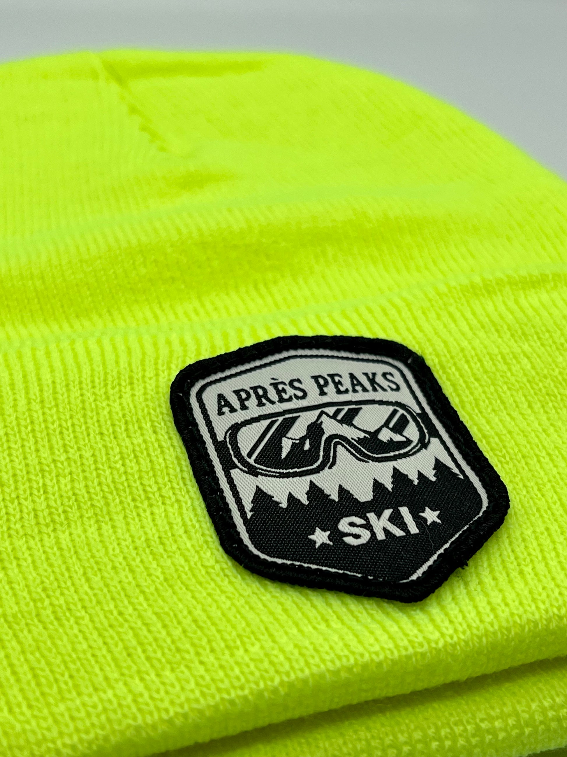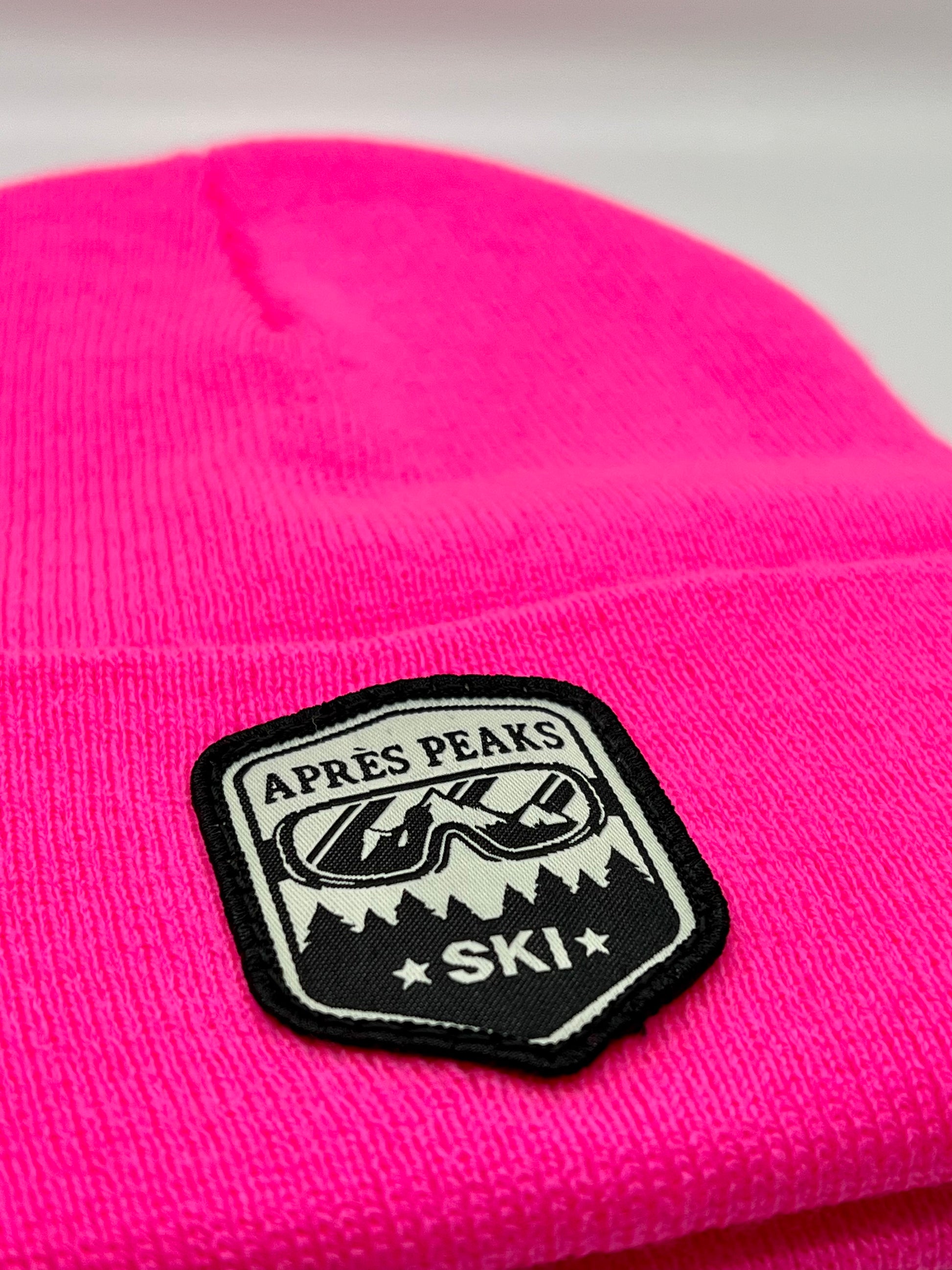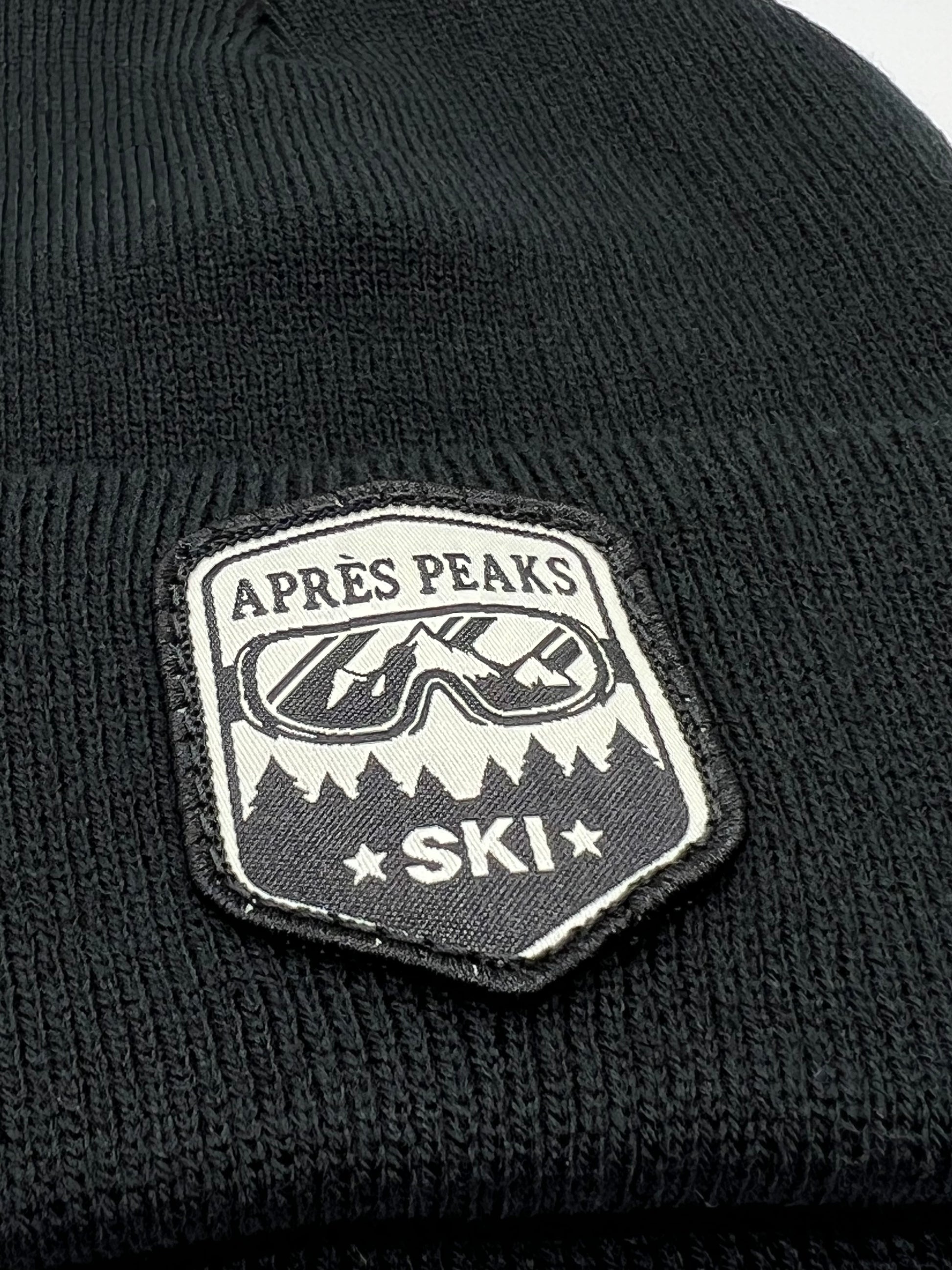 Celebrate after the peaks while rocking one of out Après Peaks beanies! Make some noise with a vibrant color or keep it cool with classic black. The hand stitched woven patch design is also available as a sticker. Beanies are one size fits most.